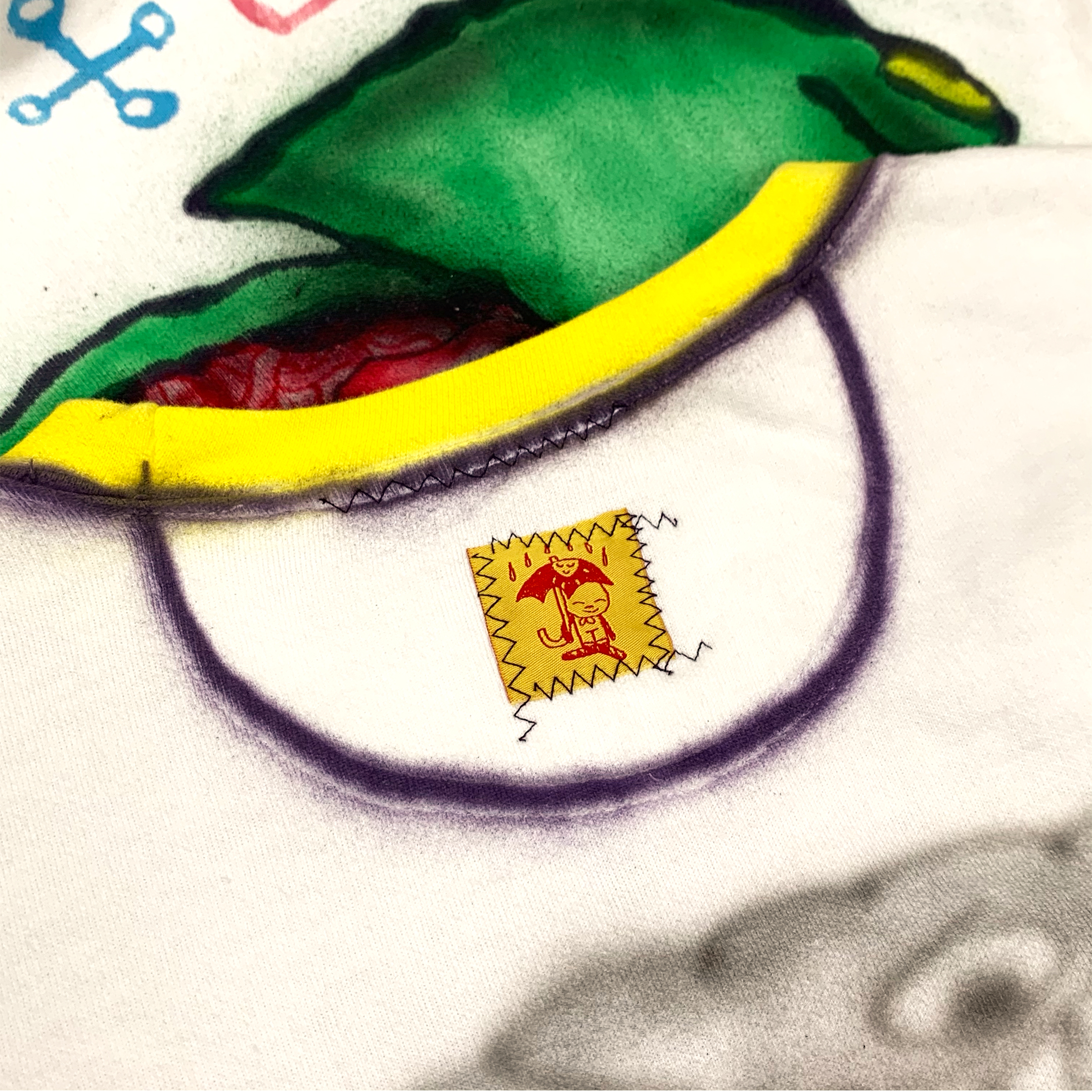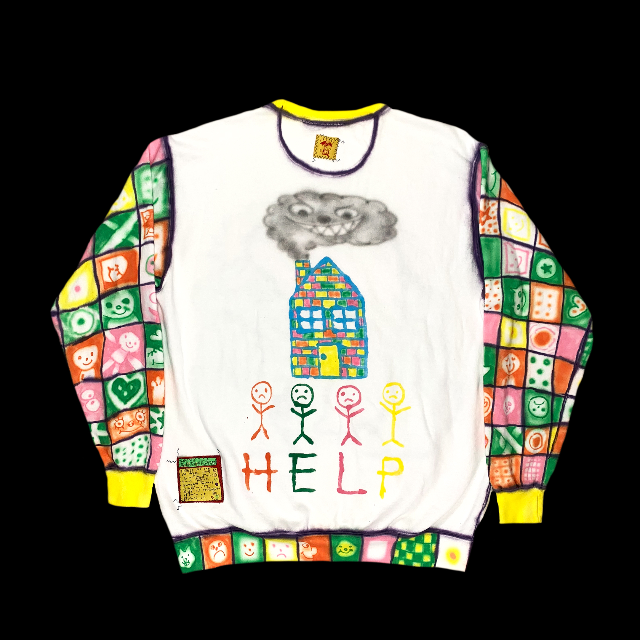 dpainted sweatshirt with unique woven tags
